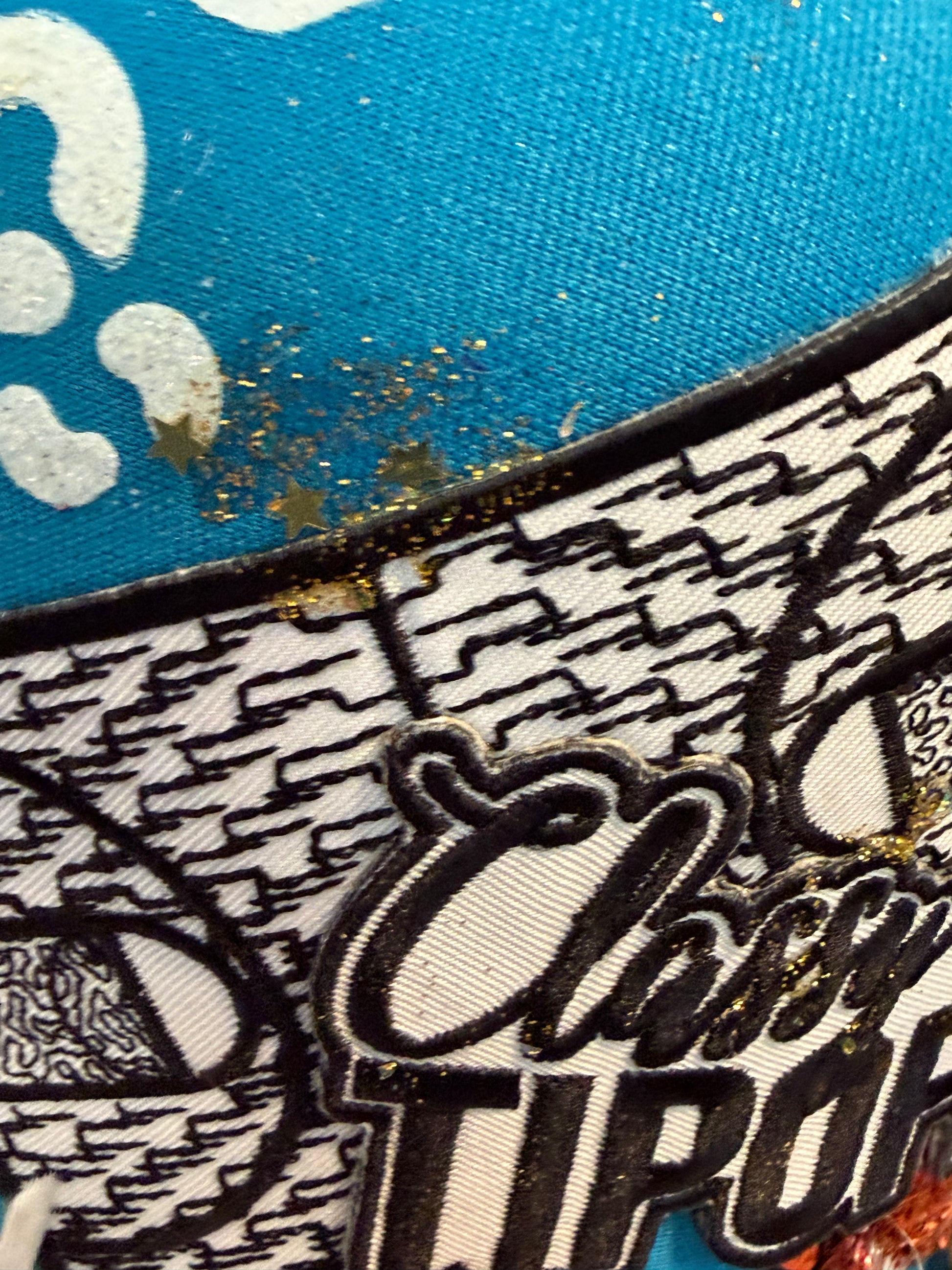 Our hats are destructed with intent. They are deliberately ripped, torn, cut, singed, painted and often times, burned by design. Fair warning: We don't sprinkle glitter, we pour it (sometimes recklessly); so while our hats are sealed, it is possible that glitter may shed from the hat. But honey, if it's not sparkling - it's not finished.