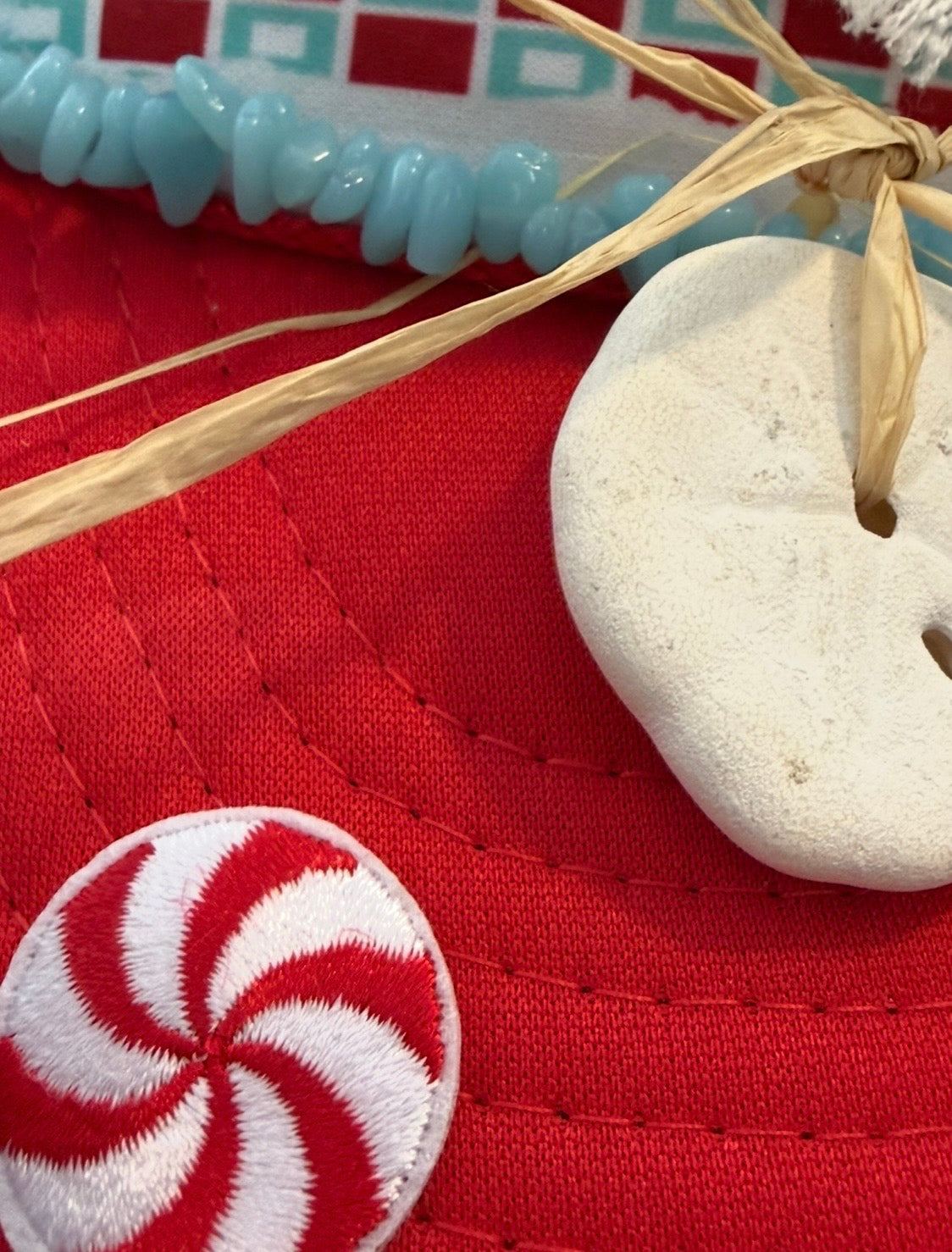 peppermints, crabs, sand dollars, turquoise and Christmas! It’s literally the perfect trucker hat!!