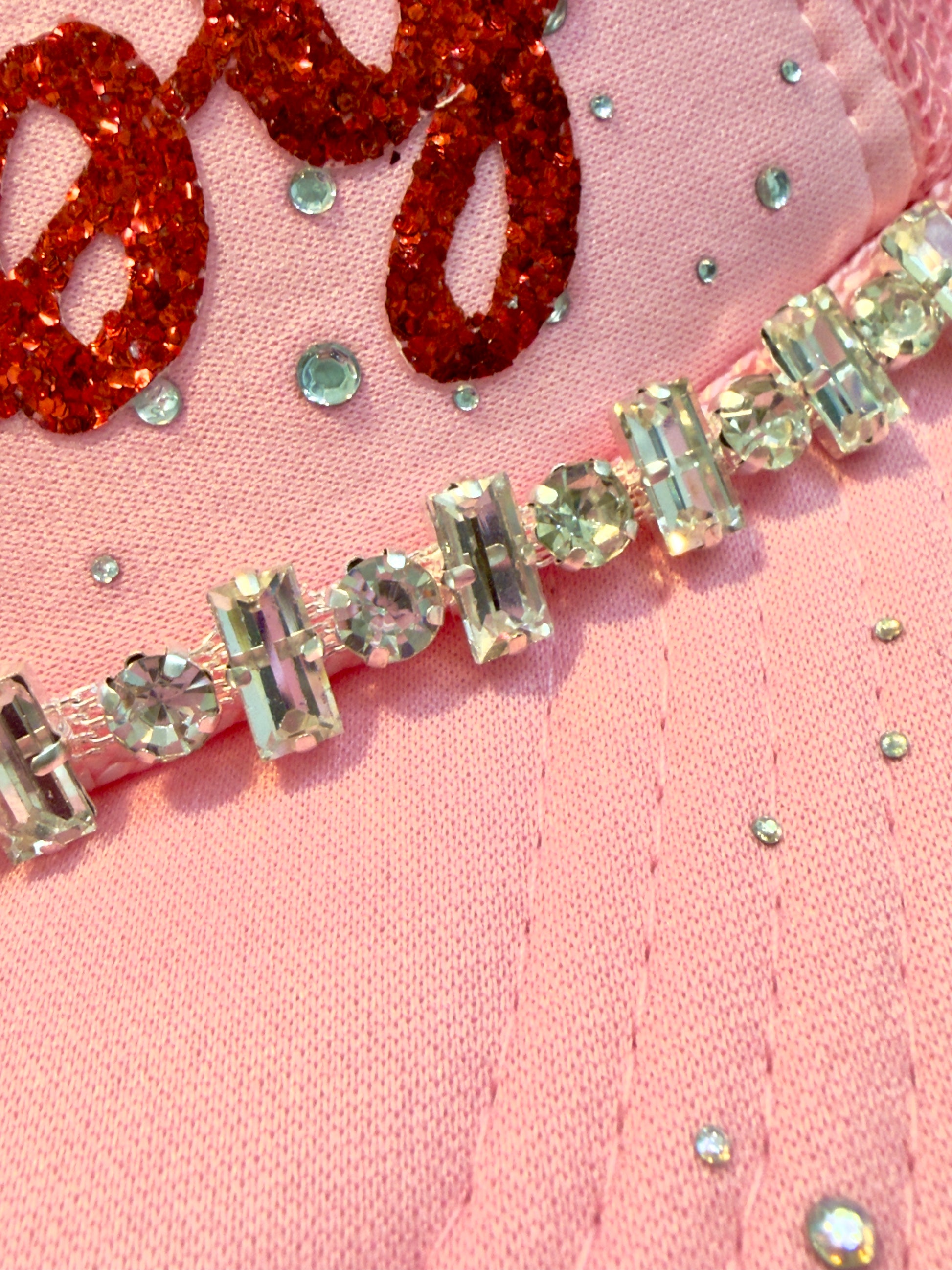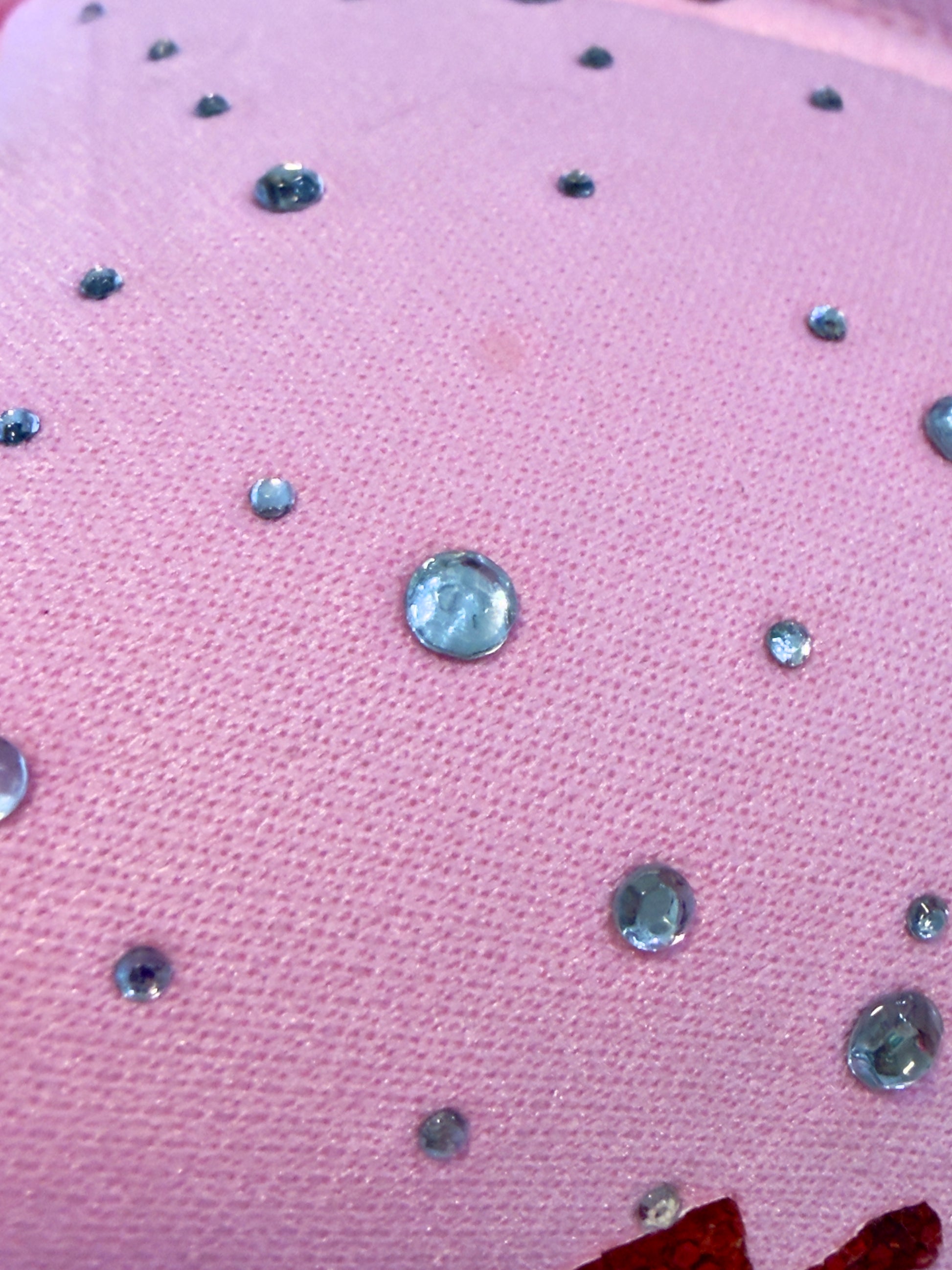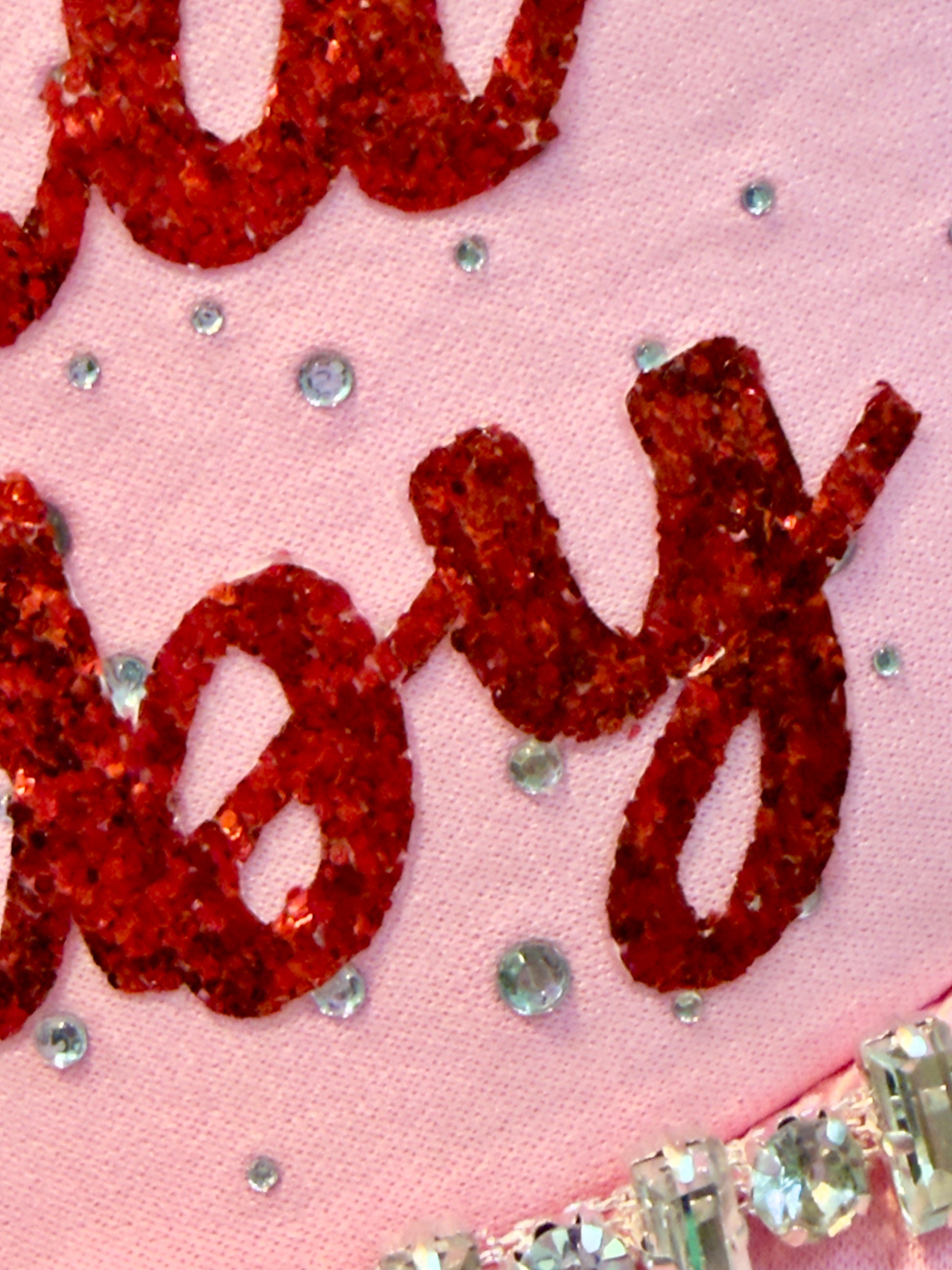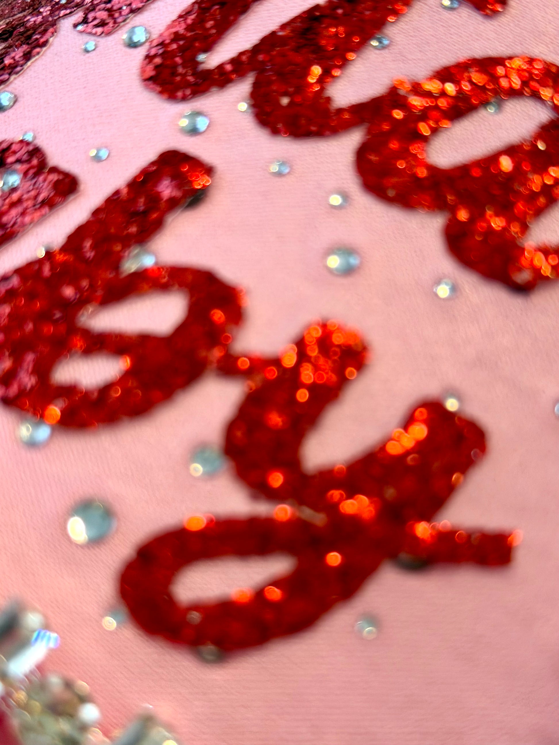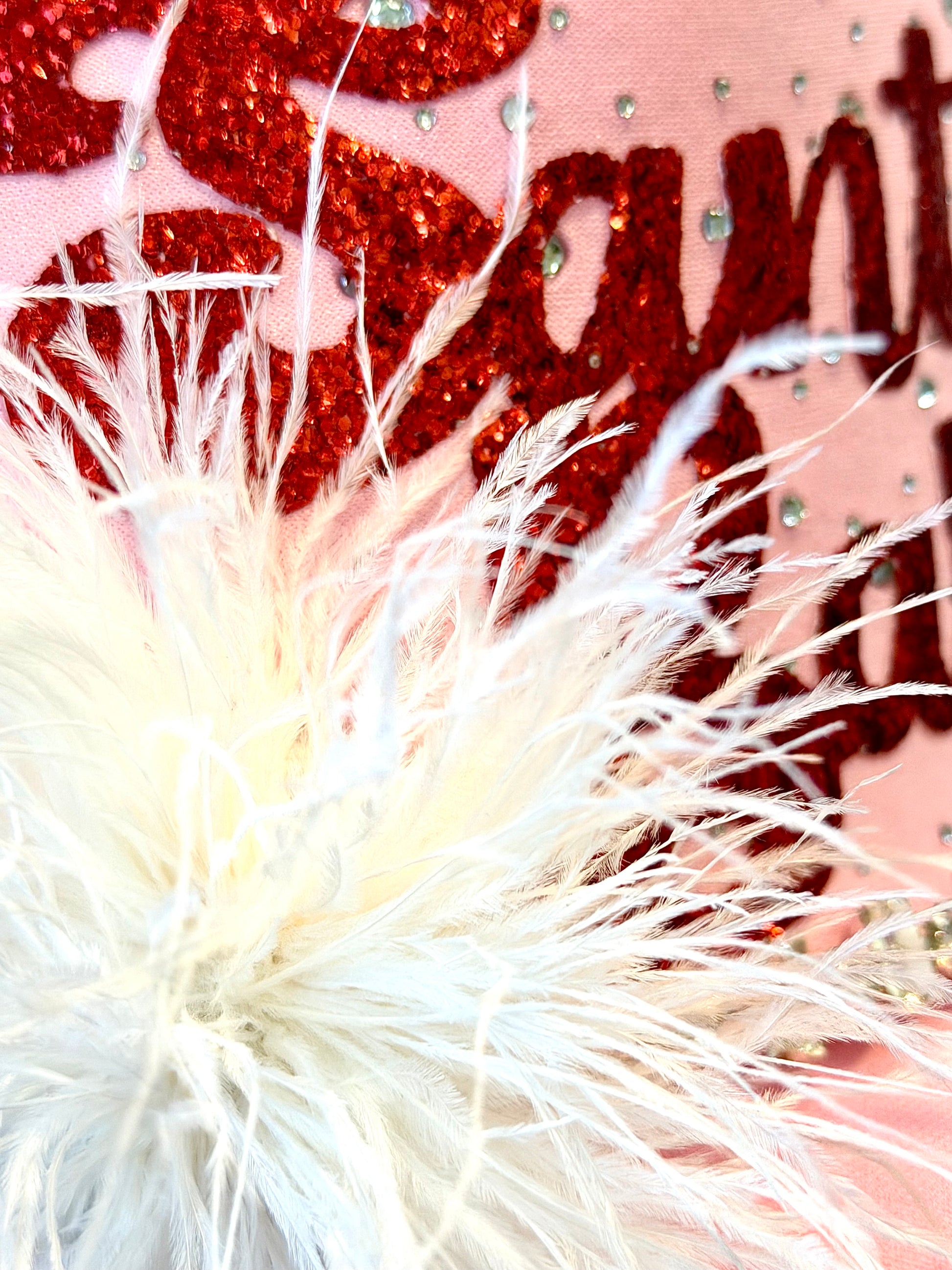 Flirty, festive, and full of sparkle! This pink beauty brings holiday glam with red glitter leatherette, rhinestone details, and a feathery pop of fun. Perfect for your holiday parties, girls’ nights, or spreading extra Christmas cheer! 🎀🎅💖