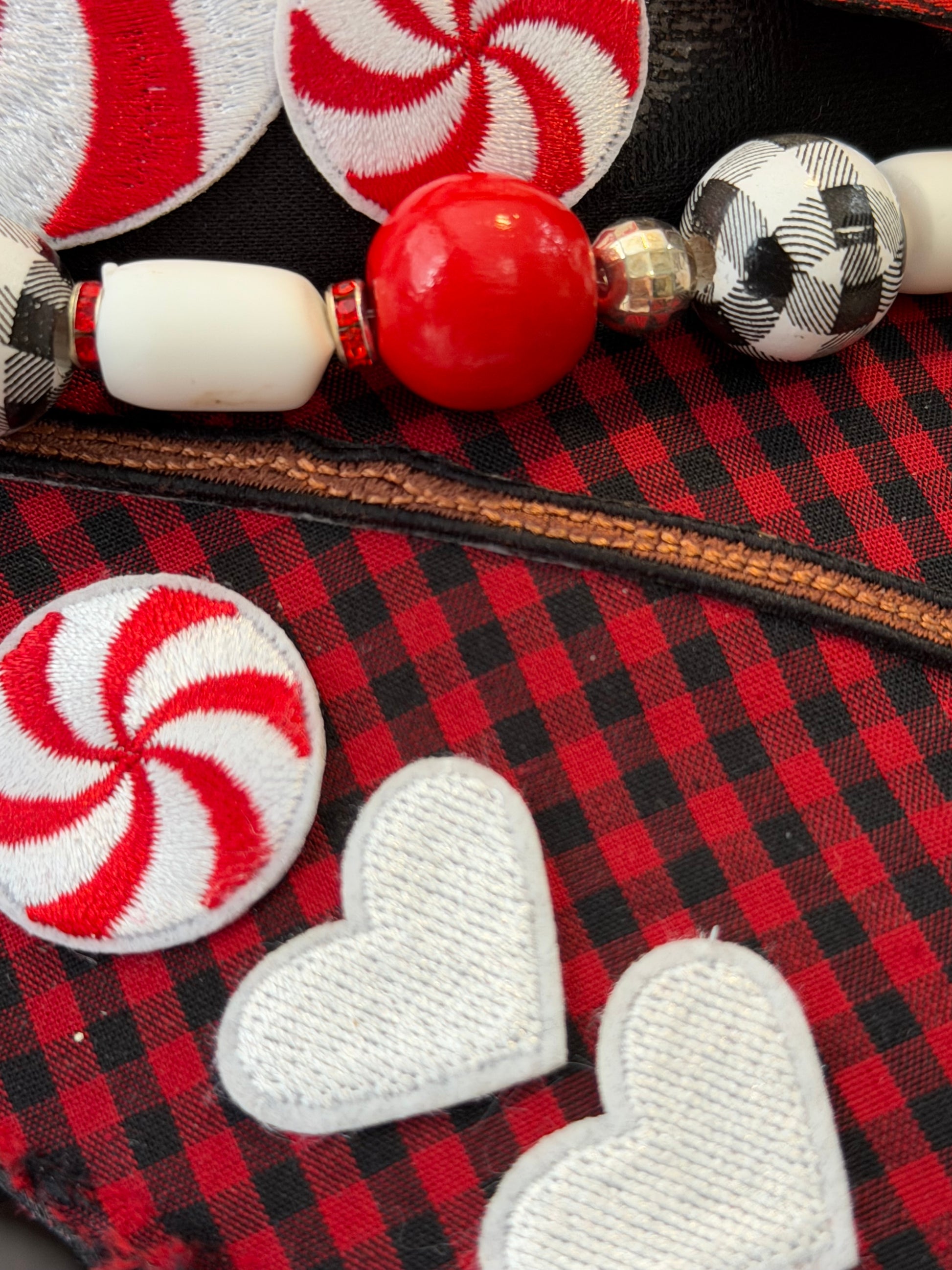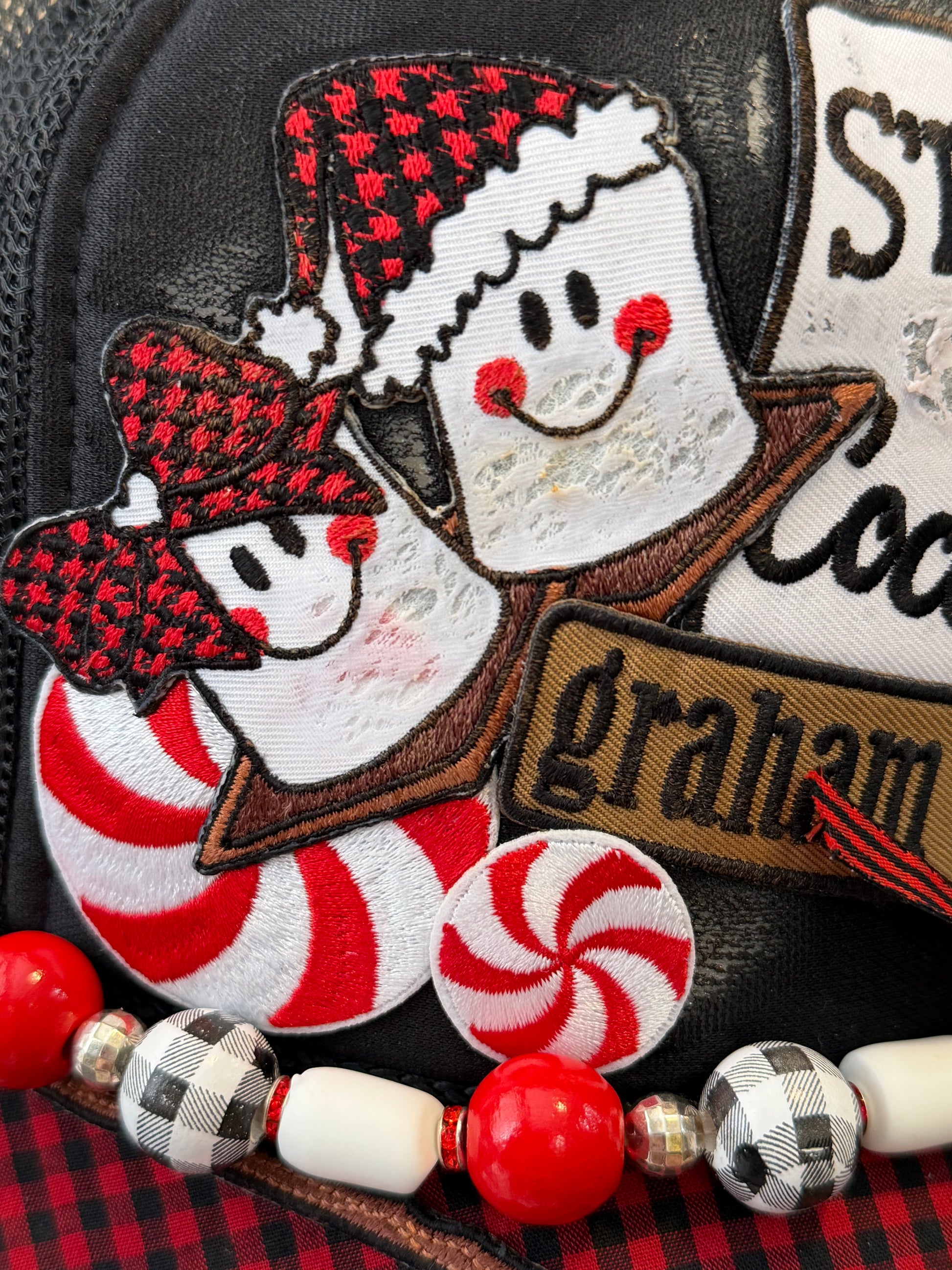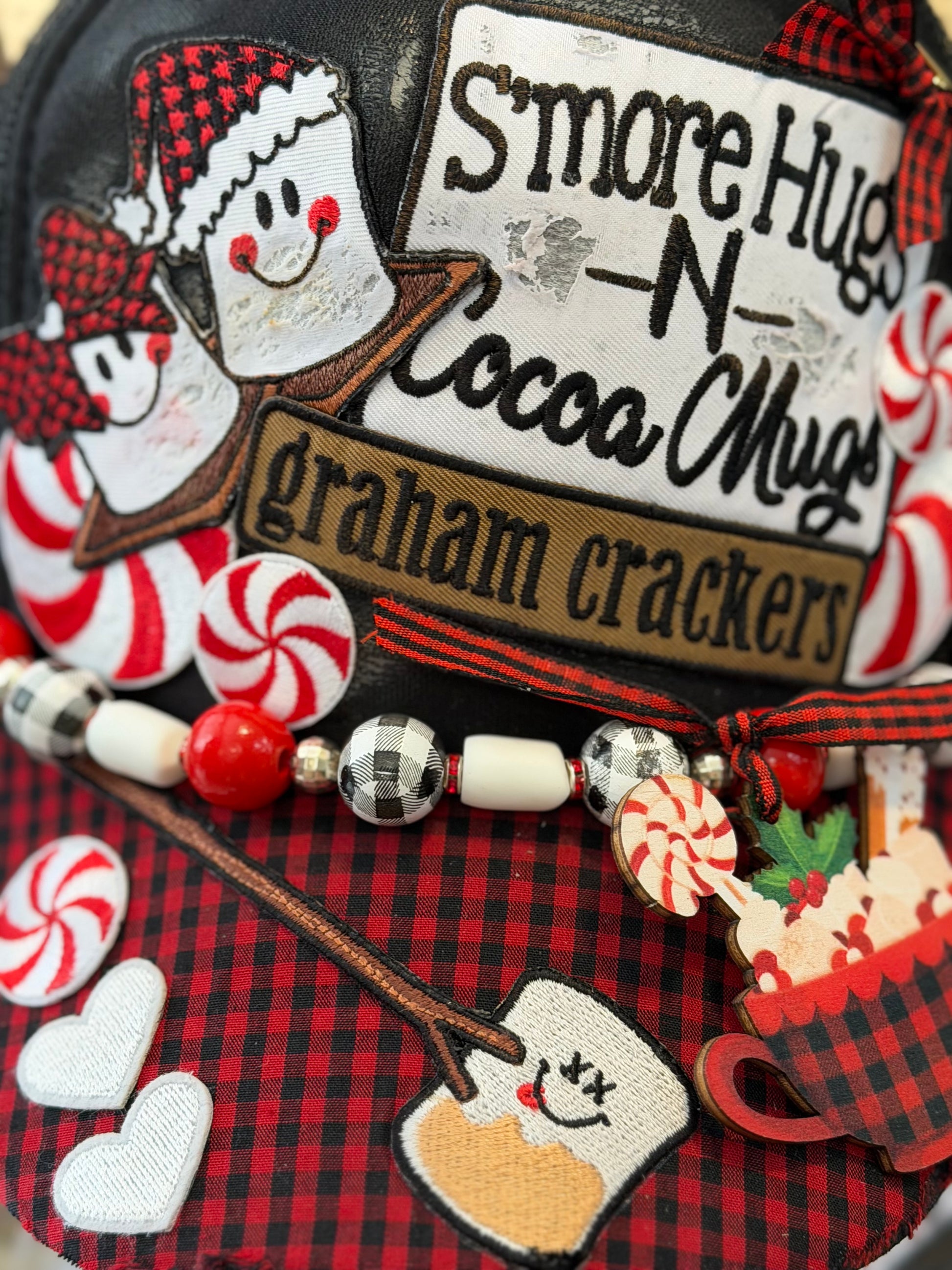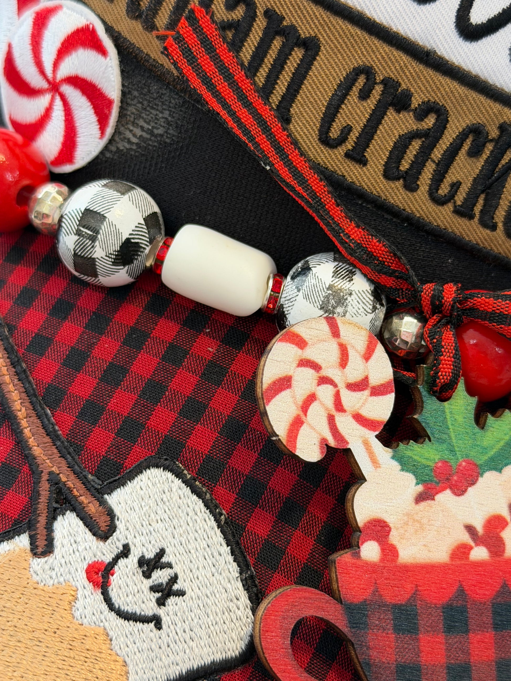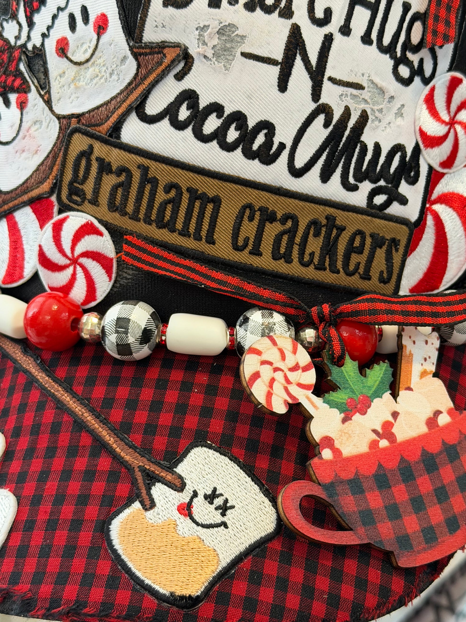 A hand made, custom (hand drilled marshmallows) chain with one RANDOM buffalo plaid mug charm. All of the mugs used are pictured in this listing and each hat will have a random mug placed on the chain. (All are equally cute; but not the same mug).